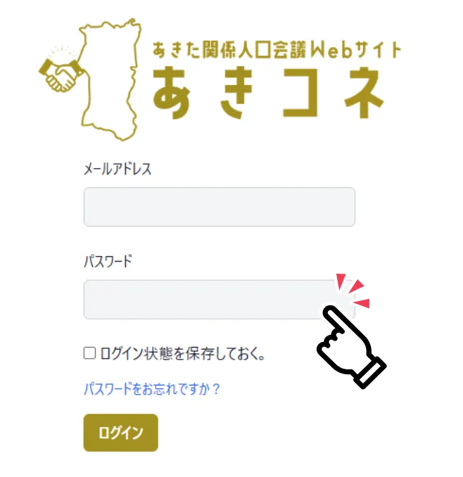 ログイン画面より、登録時のメールアドレス及び、任意設定いただいたパスワードでログインができます。