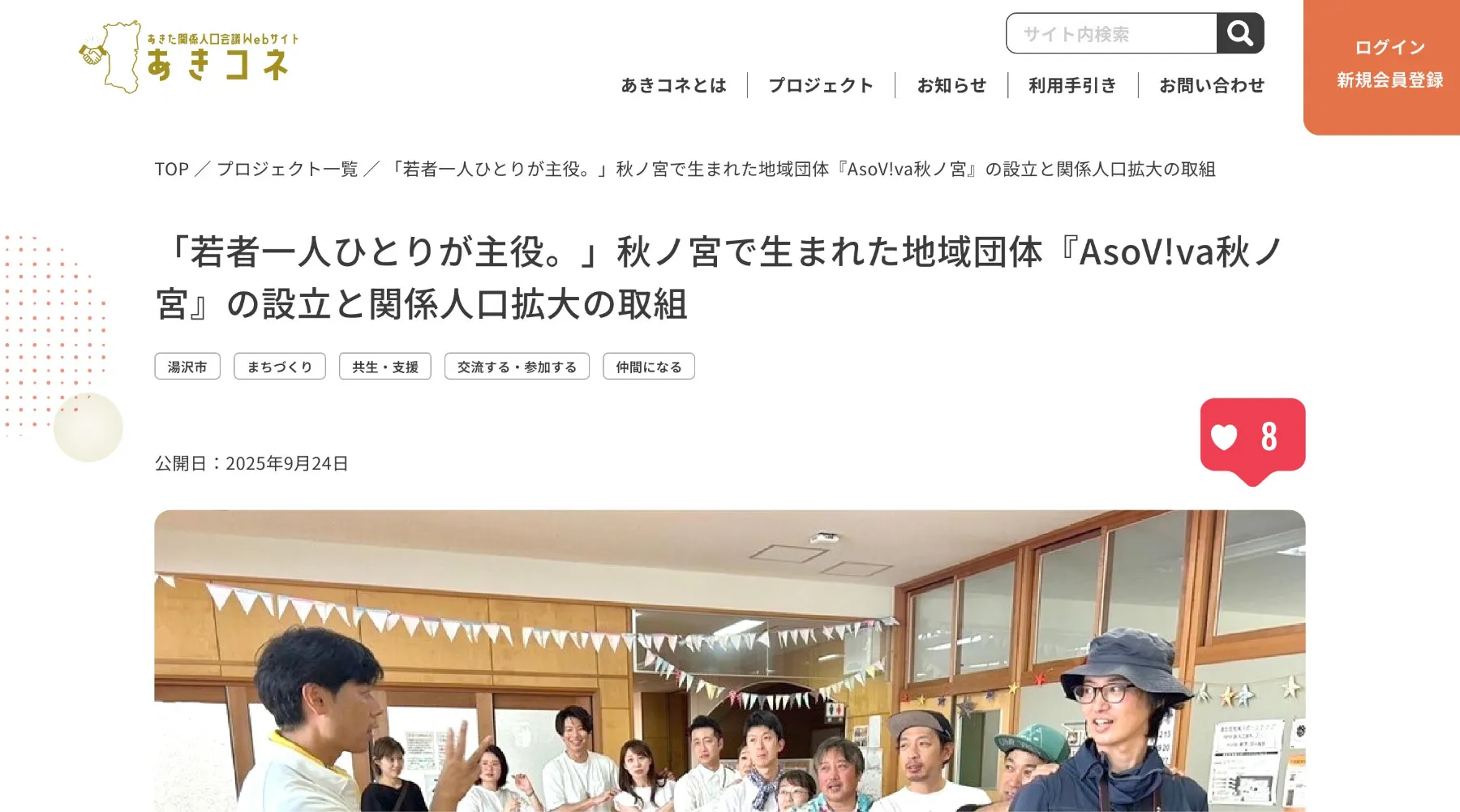 掲載する内容は、関係人口(あきフレ)の参加によって活動の幅が広がり、継続的な活動へと繋がっていく募集に限ります。なお、関係人口(あきフレ)が参加する活動は、現在継続的に取り組んでいるもの、または今後継続して行う予定のものが対象となります。