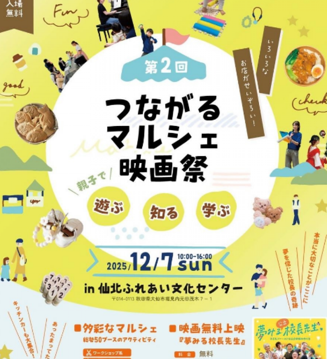 【あきたの物語】地域で家族が自分らしく笑顔になれる一日!12/7(日)「第2回つながるマルシェ映画祭」開催!
