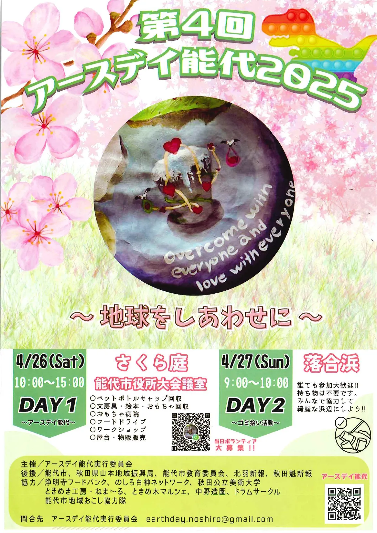 アースデイ能代実行委員会 earthday.noshiro@gmail.com または能登さん(090-2279-4492)