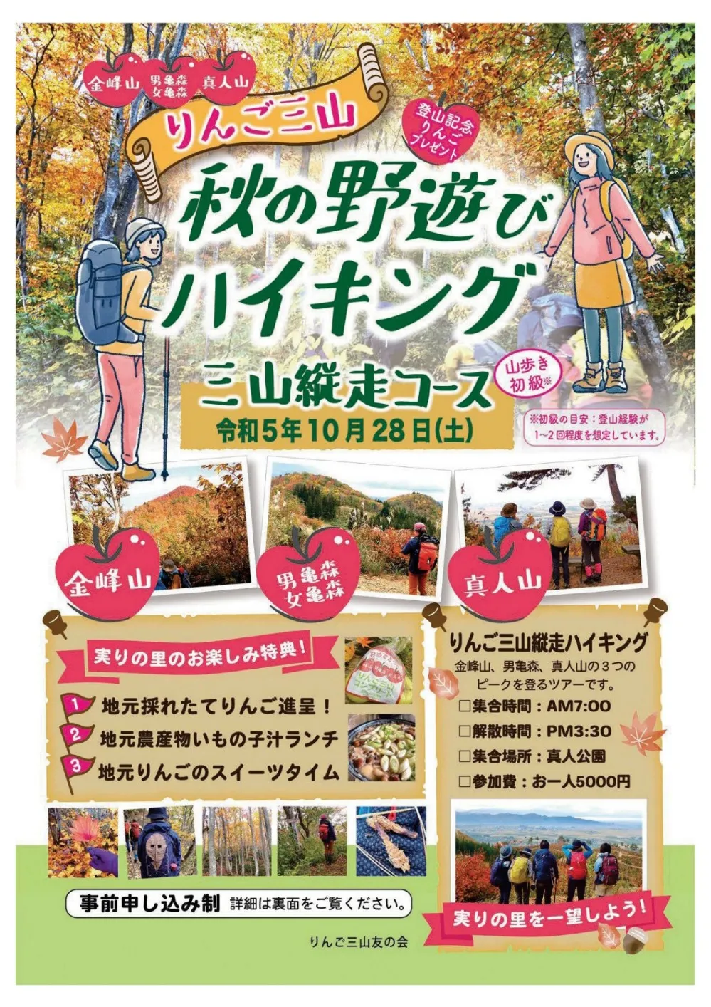 ○お申込み・お問い合わせ先 ringo3zan@gmail.com へお名前、ご住所、年齢、メールアドレスを記載し、タイトルに「りんご三山申し込み(又は問い合わせ)と記載してご連絡ください。