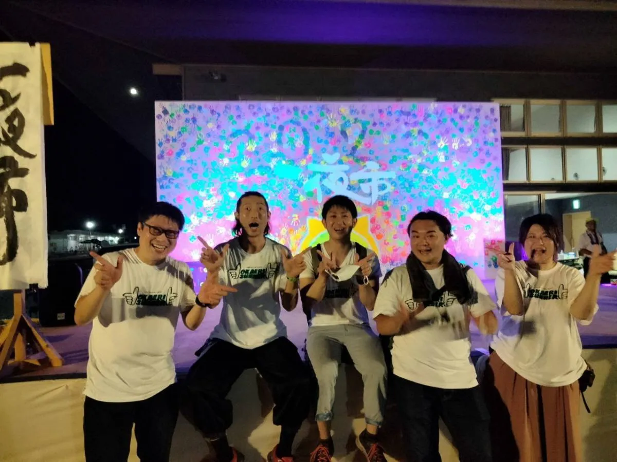 八郎潟町のお祭り「一夜市」に運営陣として関わった(むりん庵集合写真)