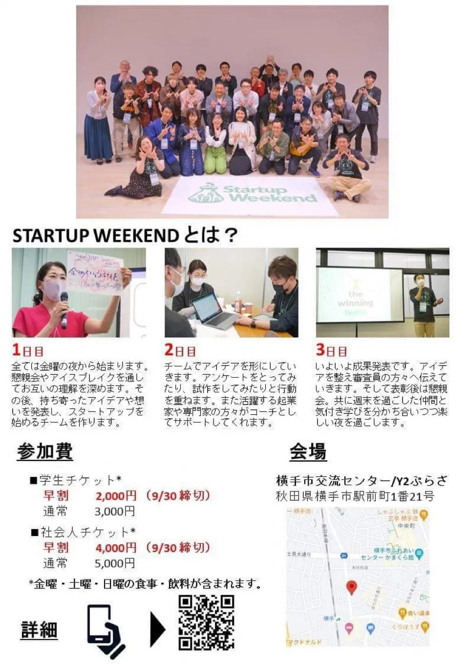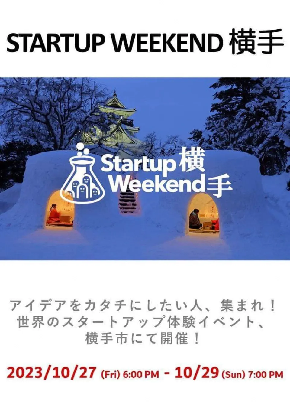 このスタートアップウィークエンドが10月27日(金)~29日(日)の3日間、秋田県横手市のY2(わいわい)ぷらざで開催されます!