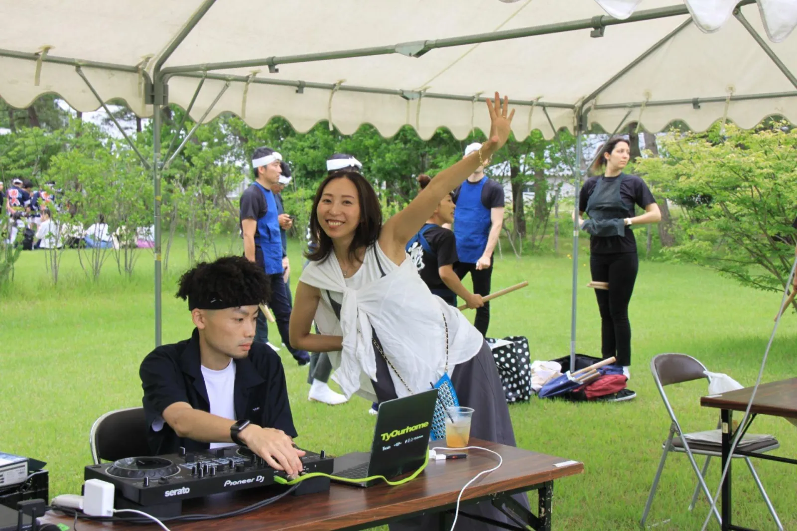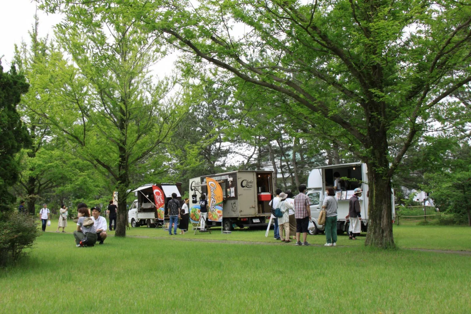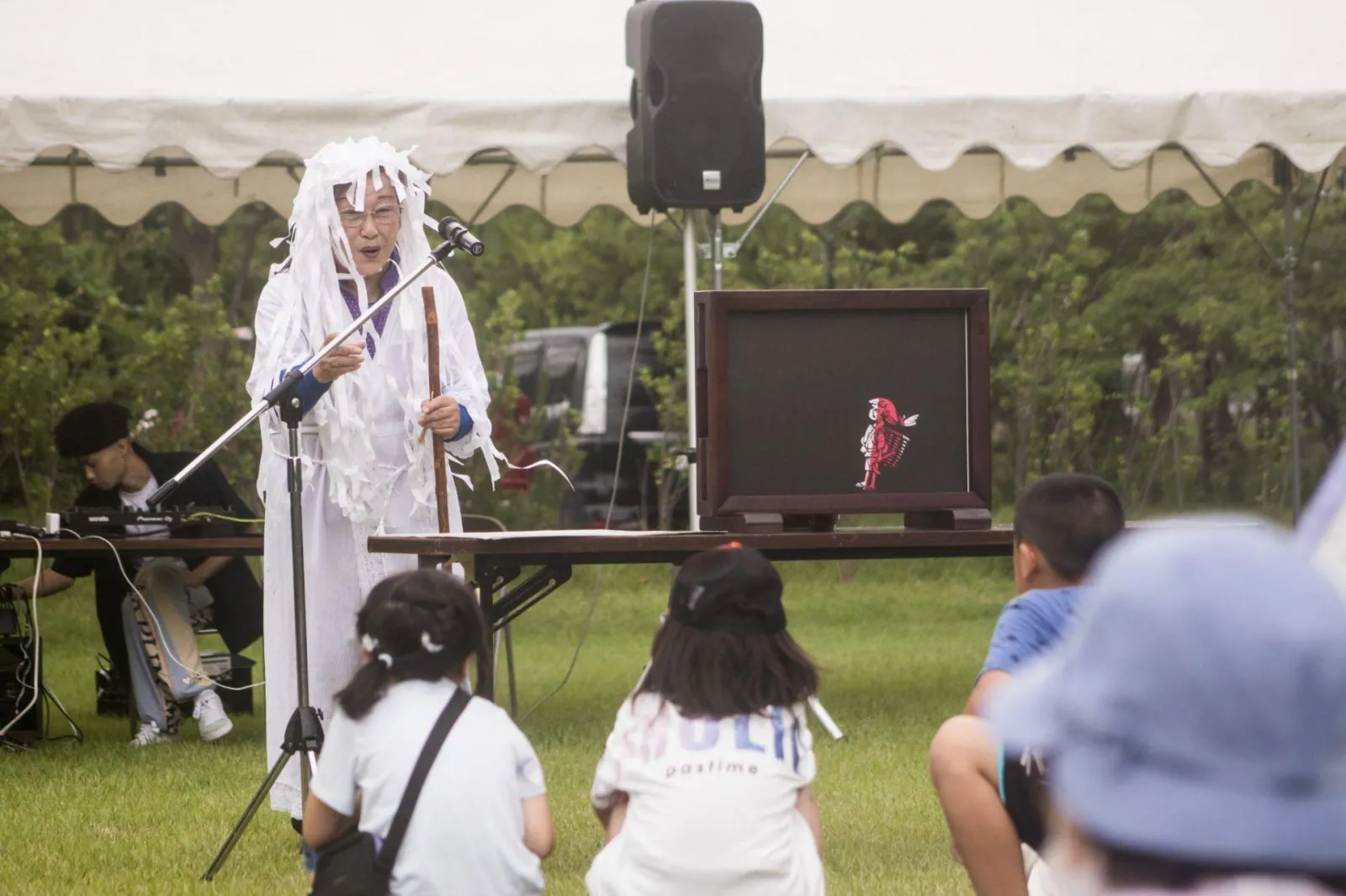 訪れた方はキッチンカーや魅力的な出店の数々を巡り、力強い太鼓の音に酔いしれ、秋田県立大学の学生の竿頭の演技に魅了され、おばあちゃんの昔語りの紙芝居に真剣に聞き入りながら、それぞれが芝生に寝そべったり、自由に時間を楽しんでいます。
