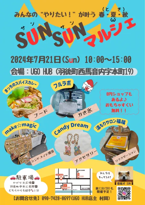 【あきたの物語】UGOHUBでSUNSUNマルシェ開催!出展者募集中【秋田県羽後町】