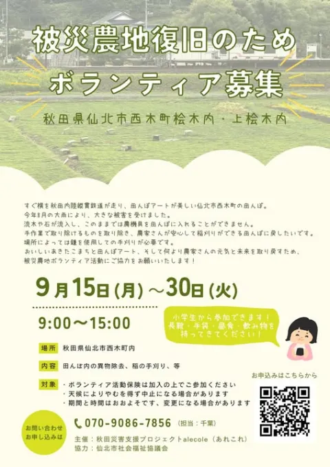 【あきたの物語】秋田県大雨災害:被災農地応援プロジェクト ボランティア募集中!