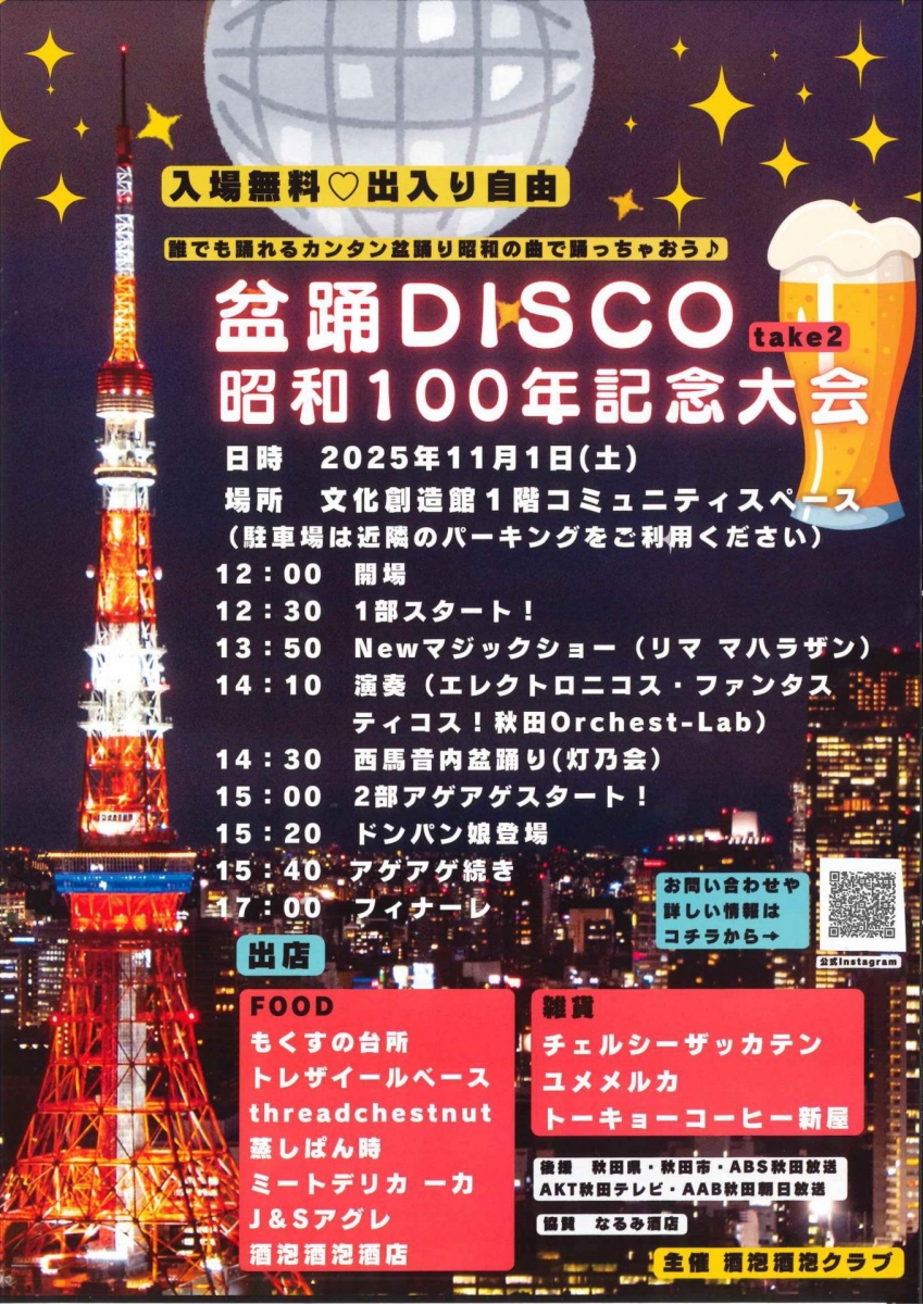 【あきたの物語】踊り好き集まれ!11/1開催 盆踊DISCOtake2~昭和100年記念大会~(秋田市)
